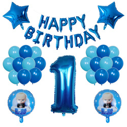 Bleu bébé dessin animé dessin animé décoration ballon ensemble anniversaire feuille ballon avec numéro fête décoration